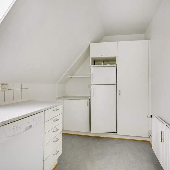 Welcome to an inviting 3-room apartment of 67 m² with a functional layout and plenty of daylight. The apartment is located on the top floor with cozy slanted walls and large skylights, which give a bright and airy feel throughout the home. Here you get an everyday-friendly base with a separate kitchen, a spacious living room and two bedrooms — ideal for a couple, a small family, or someone who wants an extra room for an office or guests. The entryway ties the apartment together and leads into a bright, separate L-shaped kitchen with white ...