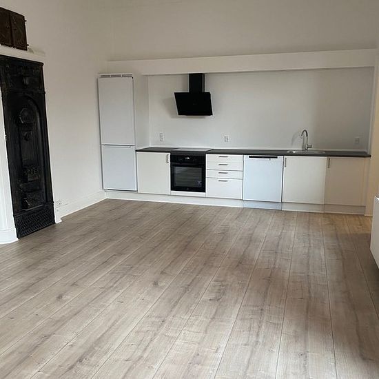 Beautiful and recently completely renovated apartment of 121 m2 (2025) Two separate rooms and living room/kitchen area. Nice well-functioning bathroom with shower niche. All major appliances. Own balcony, parking space, and storage room in the basement. Located a few minutes' walk from the city center close to educational institutions, shopping options, the pedestrian street, Slotssøen, and city life.
