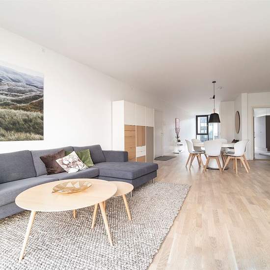 The apartments at Skovbrynet in Lyngby are a beautiful example of New Nordic Design, where respect for the Scandinavian "form and function" is valued just as highly as the need for well-being and good social settings. The apartment is unfurnished and you pay water, heating, electricity and fiber-optic internet as monthly advance payments. The large windows stretch from floor to ceiling and provide the best conditions for enjoying the impressive view and letting natural daylight fill the rooms. The heated, light wooden planks give a pleasant ...