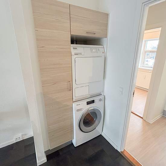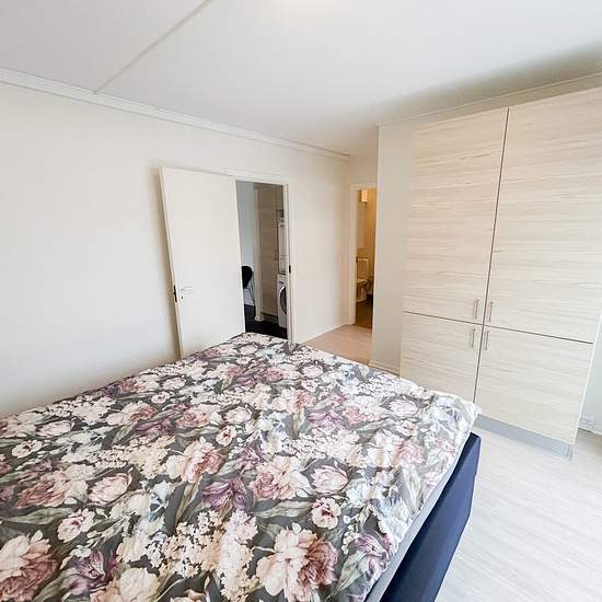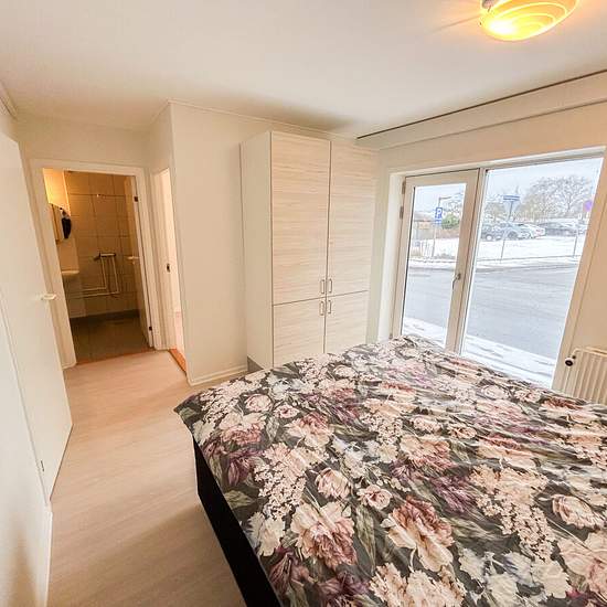 The apartment welcomes you into a large and inviting entrance hall with plenty of space for shoes, coats and storage. From here there is access to the other rooms of the home. The heart of the home is the bright living room in open connection with the kitchen-dining area. The kitchen is spacious and functional with all major appliances and plenty of room for both cooking and cozy moments. The living room provides space for both a dining area and a seating arrangement, creating a pleasant setting for everyday life. The apartment includes a ...
