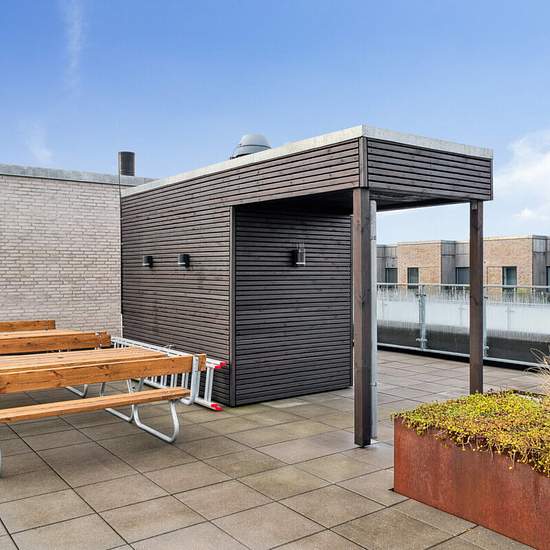 Skøn 3-værelses lejlighed med stor altan Køkkenet er godt udnyttet med et flot hvidt HTH-køkken med alt i hårde hvidevarer. Der er installeret følgende: Køle/fryseskab Indbygningsovn Opvaskemaskine Emhætte Kogeplade Lejlighedens badeværelse er udstyret med vaskesøjle og stor bruseniche. Der er installeret følgende: Vaskemaskine Tørretumbler De 2 soveværelser er udstyret med indbyggede skabe, som giver rig mulighed for opbevaring. Til lejligheden hører et særdeles stort depotrum med til lejligheden. Derudover er der elevator i ejendomme...