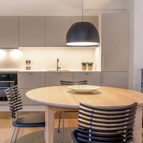 StigsborgHus er tegnet med mange skæve vinkler, der giver mulighed for mange forskellige lejlighedstyper. Derfor kan du vælge mellem hele 149 skønne lejeboliger, hvor kun få er ens. Boligerne findes med 1-5 værelser på størrelser fra 39-160 m². Alle lejlighederne har udgang til en skøn altan, hvor størrelsen er mere generøs end hvad man typisk ser. Uanset hvilken lejebolig du vælger, kan du glæde dig over den enkle nordiske stil, hvor der er kælet for alle detaljer. Boligerne er indrettet med eksklusive køkkener fra HTH i enten lys beige el...