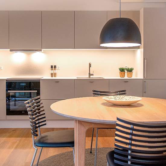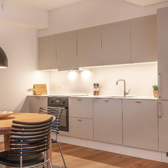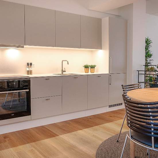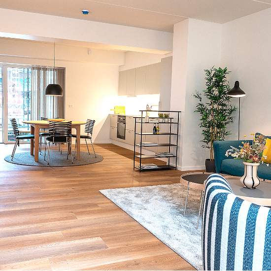 StigsborgHus er tegnet med mange skæve vinkler, der giver mulighed for mange forskellige lejlighedstyper. Derfor kan du vælge mellem hele 149 skønne lejeboliger, hvor kun få er ens. Boligerne findes med 1-5 værelser på størrelser fra 39-160 m². Alle lejlighederne har udgang til en skøn altan, hvor størrelsen er mere generøs end hvad man typisk ser. Uanset hvilken lejebolig du vælger, kan du glæde dig over den enkle nordiske stil, hvor der er kælet for alle detaljer. Boligerne er indrettet med eksklusive køkkener fra HTH i enten lys beige ell...