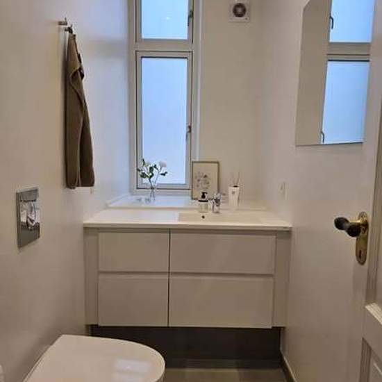 Luminous 3-room apartment, 100 sqm, centrally located in Odense C — available for move-in as soon as possible. In a beautiful building from 1895, a newly established, lovely, large 3-room apartment of 100 sqm is offered. The apartment contains: entrance hall, guest toilet, large bright kitchen/dining area with new appliances (incl. dishwasher) and a French balcony facing Østre Stationsvej/Hans Tausensgade; large living room with double doors to the sleeping area: large master bedroom with access to a walk-in closet and bathroom with washing...