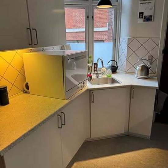 3-room apartment, 93 m3, on Dronningensgade - move-in as soon as possible. Newly renovated 3-room apartment on the ground floor. The apartment contains: entrance hall, large living room, large bedroom, smaller room, corridor, new nice bathroom with underfloor heating and washing machine. Kitchen with stove, extractor hood and fridge/freezer, storage room and intercom. Access to bicycle parking in an enclosed courtyard. The apartment is centrally located, 700 m from the pedestrian shopping streets and 1,300 m from the train station Monthl...