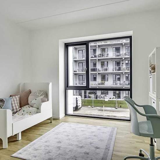 Lejligheden på 94 m2 ligger i Promenadebyen ved Odense havne kanal, tæt på havnebadet, stationen og tæt på midtbyen. Lejligheden har 2 store lyse værelser, stort køkken og stue i et, bad/m brus, og terrasse med udsigt skoven og byen. Hele lejligheden er lys og venlig, indeholder køkken med hvide elementer med indbygget ovn, kogeplade og køleskab m/frys desuden er der opvaskemaskine. Det er godt indrettet i sammenhæng med stuen som har trægulve og store lyse vinduer ud til de to terrasser. De 2 værelser er indrettet med skabe, så denne lejlig...