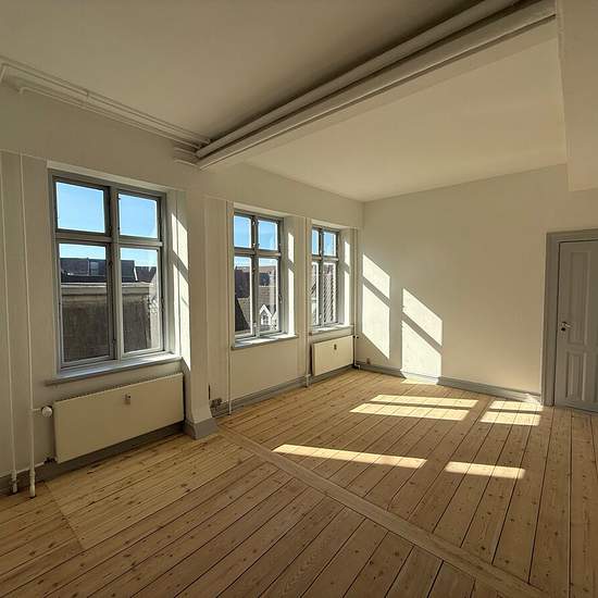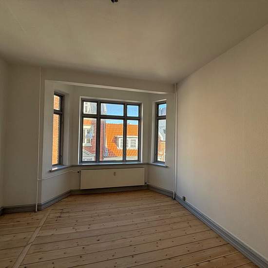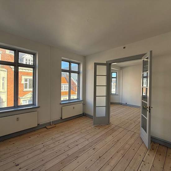 We are renting out this beautiful apartment full of soul and character. Perfectly located in the heart of Odense. Here you get 87 m² with plenty of space, high ceilings and a fantastic flow of light that creates a bright and inviting atmosphere. The apartment comprises two large living rooms and an elegant double glass door that provides a natural and open connection between the rooms. The bedroom is spacious and has access to a hidden storage room, ideal as a wardrobe or for extra storage. The property offers a shared courtyard area with bi...