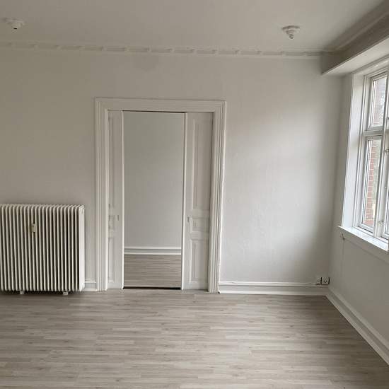 Large and lovely 3-room first-floor apartment of 72 sqm. The rental unit includes an entrance hall, kitchen, living room, 2 bedrooms and a bathroom. District heating. With radiator meters. Own meter with billing paid directly to the utility company. Billed through the landlord as a contribution of DKK 300.00 per resident, which is added to the rent.