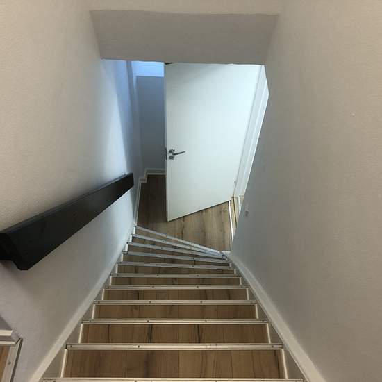 Completely newly renovated 3-room apartment on two levels of approximately 90 m². It comprises an entrance hall, bathroom, kitchen and living room with access to its own courtyard. On the first floor there are two bedrooms, a toilet and access to a small private terrace. There is parking right in front of the building and a private garage is included. Fibre-optic internet is installed and ready to be activated by signing up with a provider of your choice.