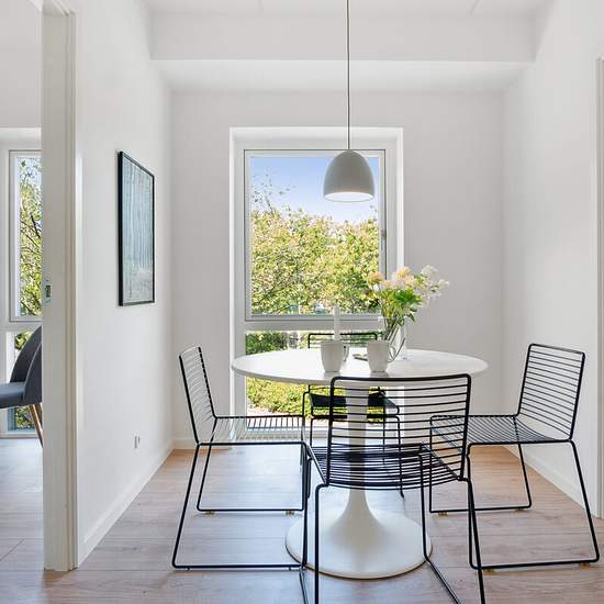 Beskrivelse Velindrettet 3-værelses kvalitetslejlighed med sydvestvendt altan/terrasse Den nyopførte lejlighed byder på et stilrent design og materialevalg hele vejen igennem. I får entré med plads til overtøjet, et lækkert køkken/alrum i åben forbindelse til stuen, der har direkte udgang til sydvestvendt altanen. Dertil et soveværelse og badeværelse med combi vaske/tørremaskine. Lejlighederne er i nordisk stil med flotte gulve, hvidmalede vægge og store vinduespartier som giver et dejligt lysindfald. Indretningen af lejligheden er oplag...