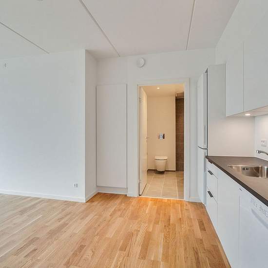 All apartments have an open-plan kitchen/living area. In the one-room apartments the kitchen/living area also functions as the bedroom. Otherwise you have one or two separate rooms. The bathroom is well appointed with laundry facilities and underfloor heating. All units have their own terrace or balcony. Appliances The homes include all major appliances, including a washing machine, tumble dryer and dishwasher. Pets Tenants may apply for permission to keep an indoor cat and a dog at the address. Outdoor cats are not allowed. See our full ...