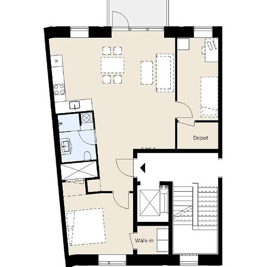 3-room apartment near Rødovre Centrum This large 3-room apartment is located in Erantishaven, which consists of 83 modern quality apartments in central Rødovre. The property is situated very close to the town hall and only 100 m from the large shopping centre Rødovre Centrum. From here it is also only a few minutes' walk to Damhusengen and the recreational areas around Damhussøen. The complex is built as a stepped L-shaped building rising from the basement to the fifth floor. Common areas have been created above the parking basement. All a...