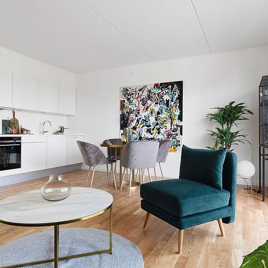Alle boligerne har altaner i galvaniseret stål, der er i harmoni med ejendommen og tilføjer denne et let udseende. Ejendommen er i 5 plan og indeholder 121 boliger fordelt på 2-, 3- og 4-værelser. Boligerne er udstyret med alle moderne bekvemmeligheder. Der er egeparketgulve i både entré, stue, værelser og køkken. Køkkenerne er fra Tvis Køkkener og dermed dansk kvalitet i stilsikkert design. Ved Ringen 15, 1. tv. ligger i et roligt og attraktivt boligområde i Roskilde med kort afstand til både byliv og grønne områder. Området er kendetegnet...