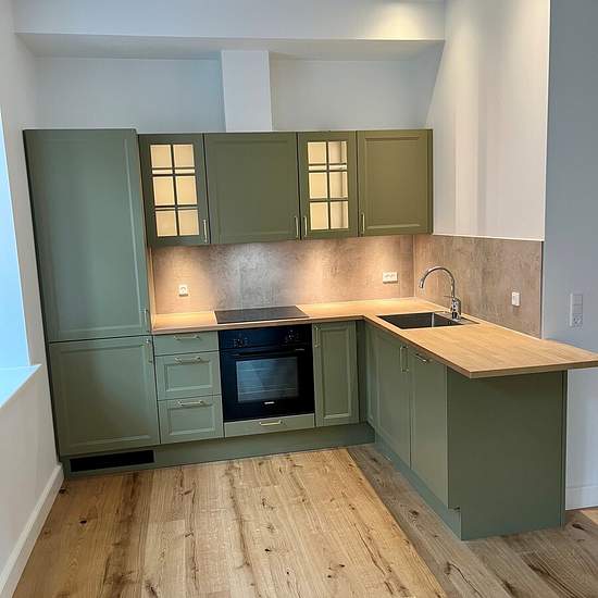 Fully renovated ground-floor apartment in a well-maintained period building with an elevator. It comprises an entrance hall, bathroom, kitchen, living room and two bedrooms. The apartment has its own courtyard and a storage room is included. The property is centrally located in a quiet area, within walking distance of shops and public transport. Utilities, which are in addition to the rent, must be paid directly by the tenant to the utility companies. The tenancy does not allow any pets.