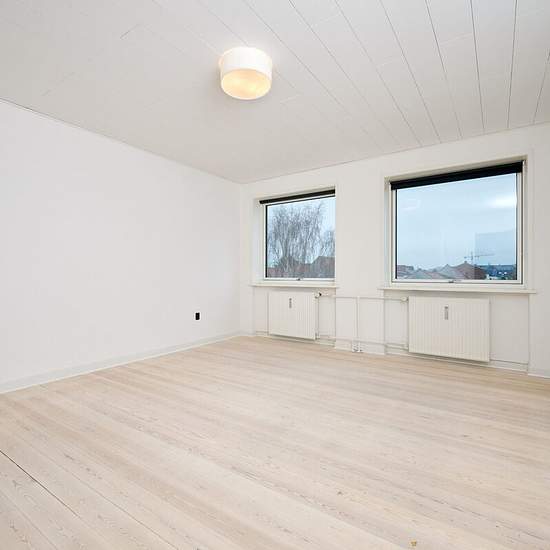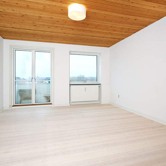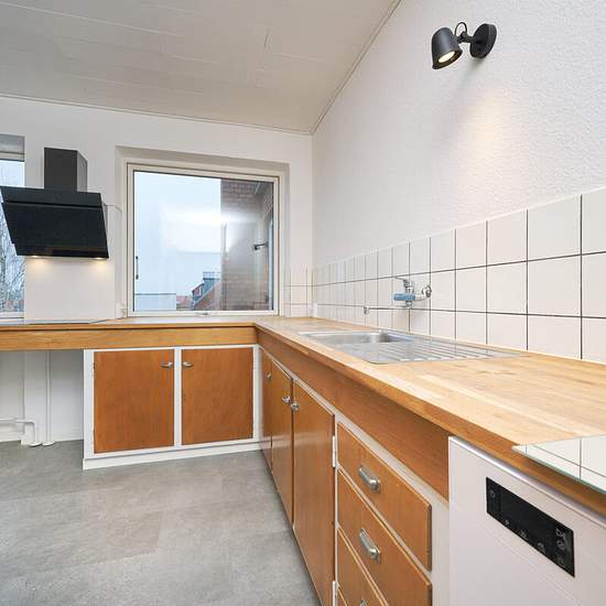 Charming 3-room apartment with balconies – Skolegade 39A, Silkeborg On the 3rd floor a charming apartment of 112 m² is for rent, featuring original teak doors and kitchen that give the home plenty of character. The apartment comprises 3 rooms, one of which has a built-in wardrobe, as well as a large living room with balconies on both sides, providing lots of light and views. The kitchen is equipped with a dishwasher and has space for a small dining area – perfect for cozy meals. There is free parking and access to a large shared roof terrace...