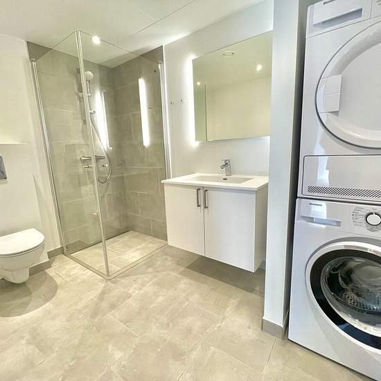 Step into this spacious 3-room apartment that offers a comfortable and functional living experience. At 80 m2, this modern home is designed to meet every need and desire. The property features an open and inviting living room/kitchen that forms the heart of the home. Here you can gather family and friends for cozy moments and culinary experiences. The adjoining terrace extends the living space and provides the opportunity for outdoor relaxation and social gatherings. The bathroom is modern and stylishly furnished and offers a pleasant atmosp...