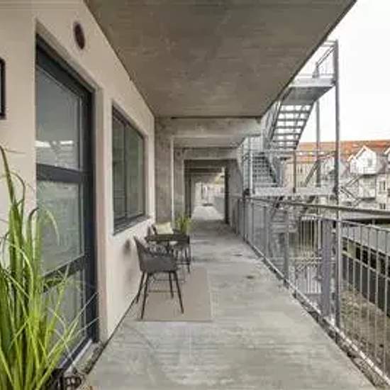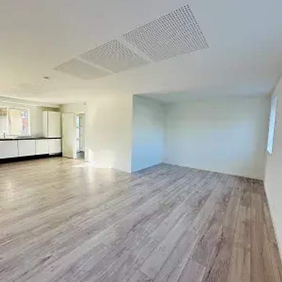 This beautiful 3-room apartment, at 100 m2, was built in 2021. It comprises 2 rooms of 11 m2 and a larger open-plan kitchen/living area of approximately 40 m2 that spans from one side of the home to the other, providing sightlines and lovely light from both sides. The kitchen is from Aubo and appears sleek with handleless doors with push-to-open and a dark laminate countertop. It is equipped with all major appliances. From the entrance there is access to both the kitchen/living area and the bathroom. The entrance also contains a utility cabi...