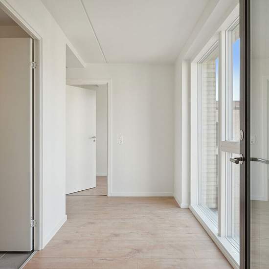 Note: It is a requirement that tenants of this rental be 55 years or older and have no children living at home. All apartments are laid out with a small entrance hall, a bathroom, a lovely open-plan kitchen/living area and a separate bedroom. In the three-room apartments there is also a small extra room that can suitably be used as an office. Each home has a storage room in the building’s basement. Each apartment has either a private terrace or a balcony, and there is underfloor heating in all rooms. Appliances The homes come with all maj...