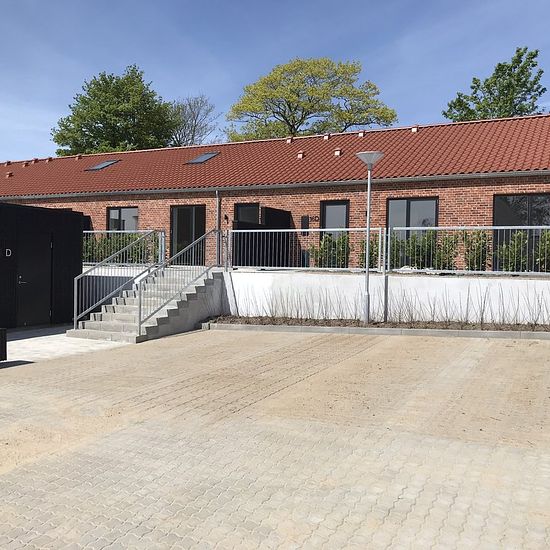 Terraced house built with quality materials in 2024 is now ready for rent. The home is well-designed with spacious rooms, vaulted ceilings, and beautiful natural light from large windows and skylights. The layout includes an open-plan kitchen and living room, bathroom, bedroom, room, and entrance/utility room. Additionally, there is a tool shed and a private terrace on both sides of the house. The property has an attractive location in a peaceful area directly opposite the church and with a short distance to the motorway, shopping, school...