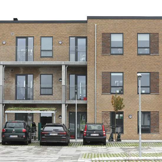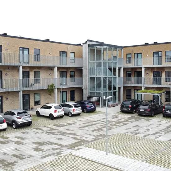 The housing complex is located on Torps Allé in the center of Vejen. The homes consist of apartments with 2–4 rooms. The buildings were completed in 2023. Each apartment has its own balcony or a small, pleasant garden. There is also an elevator, making the residences easily accessible. The development features green communal areas. In addition, an EV charging station has been installed in the parking lot for the department's residents. The residential area is centrally located, allowing access to all of the town's facilities on foot or by bi...
