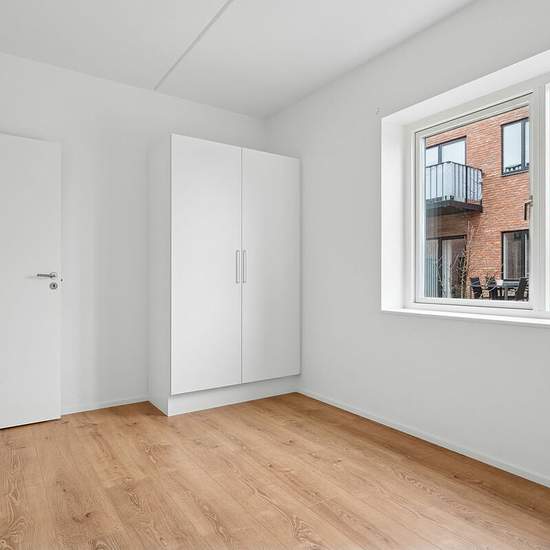 This 3-room apartment is located in the newly built property by Nørreskoven just outside Vejle. The apartment has all modern amenities, such as underfloor heating, a dishwasher, and a washing and drying machine. In the large kitchen-living area, there is space for a dining area and a cozy sofa corner where you can relax after a long day. The apartment also includes a good entrance with wardrobe space, a bedroom with a wardrobe, and an extra room that can be used as an office, guest room, or children's room. From the living room, there is ...