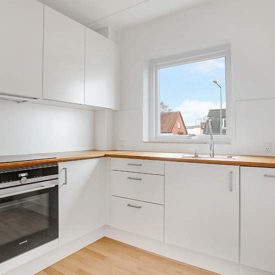 Beautiful kitchen and bathroom with private terrace GORGEOUS 3-ROOM APARTMENT NEAR THE PEDESTRIAN STREET AND THE QUAY! • Low move-in cost – only 2 months' rent as deposit. • Private terrace. • Beautiful kitchen from Invita in an attractive, timeless design and equipped with all major appliances. • Siemens built-in oven with pyrolysis, Siemens induction cooktop, Siemens fridge/freezer, Siemens dishwasher. • Nice bathroom with new cabinet layout and new fittings. Combined washer/dryer in the bathroom. • Bedroom and additional room with close...