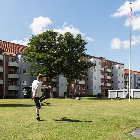 The department is block housing in 4 floors close to the city center, shopping streets/pedestrian street, school, and daycare institutions. The apartments include a stove and range hood. Cozy courtyard environment with a playground. Storage rooms are in the basement or attic. There is the possibility to rent an additional storage room as well as a garage and motorcycle garage. Elevators have been installed in the stairwells Mindegade 2-6 and Haraldsgade 1-5. Elderly and disabled persons have priority for these apartments.