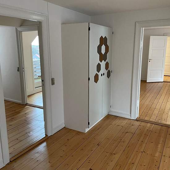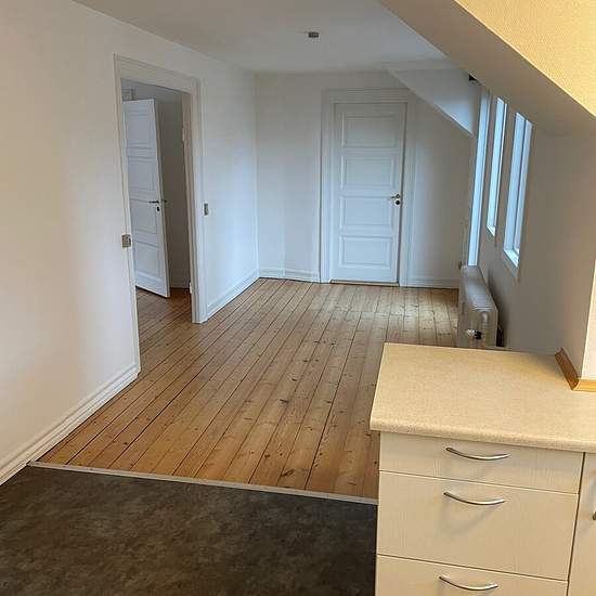 Lovely city apartment with a very central location directly on the "main street" in Viborg. The apartment, which is suitable for sharing, comprises a landing/entrance, living room, bedroom, additional room, bathroom with washing machine/dryer, and an eat-in kitchen with, among other things, a dishwasher and a chest freezer. From the kitchen/dining area there is access to a south-facing balcony. Please note that the stated advance payment of DKK 1,300 per month covers both water and heating. An annual permit can be purchased from Viborg Mu...