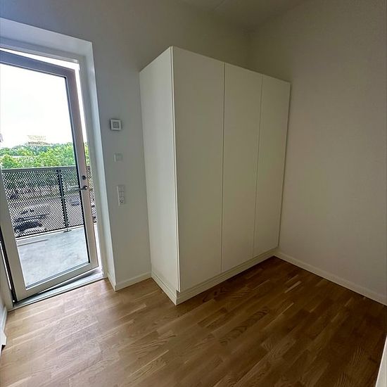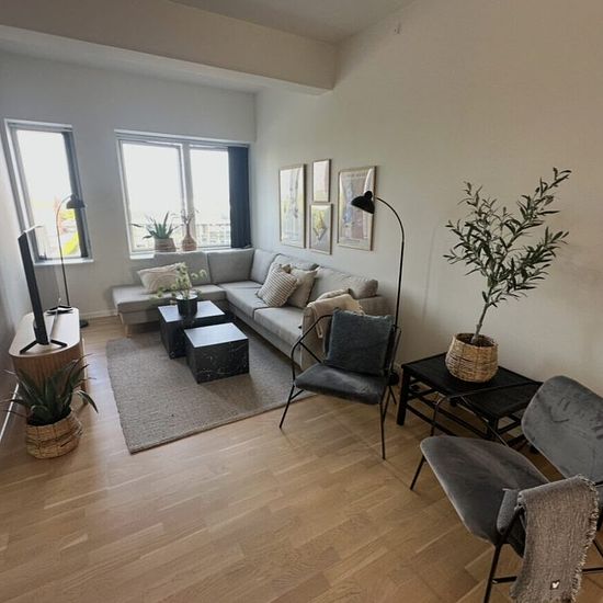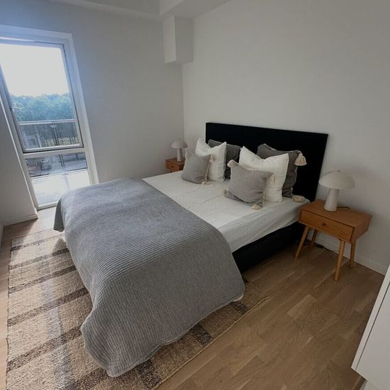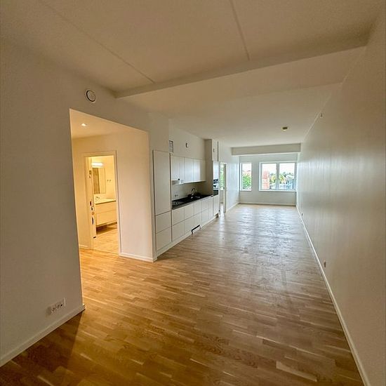 The apartment is rented out fully furnished! This exclusive and newly built 118 sqm apartment offers a harmonious combination of modern comfort and a central location in the heart of Viborg. The apartment includes a spacious and stylish bathroom with a washing machine and dryer as well as two bright rooms with built-in wardrobes. The kitchen is elegantly designed with an integrated fridge/freezer, smart storage solutions, and an oven at an optimal working height. As a resident, you can enjoy a unique selection of facilities—including breakfa...