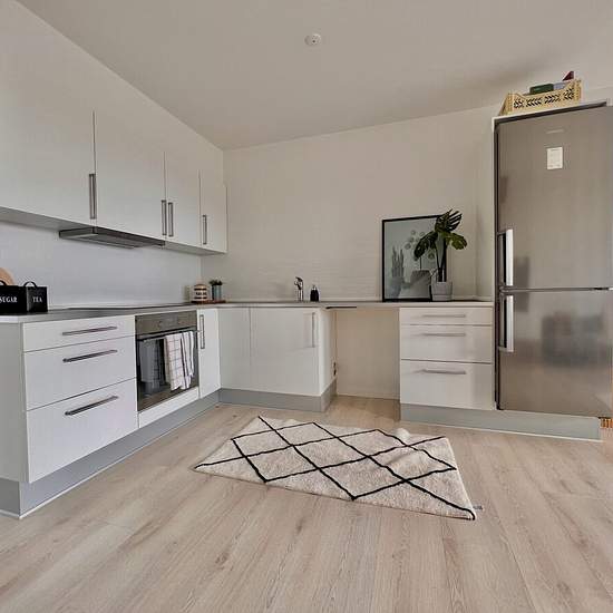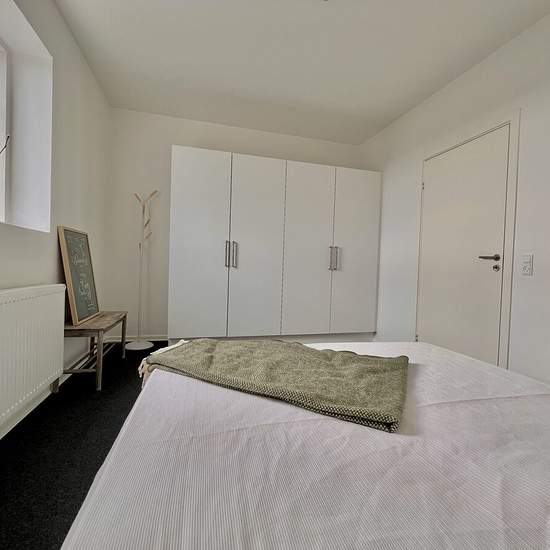 Vestergårdsringen in the suburb of Stavtrup attracts many nature lovers and families with children. The apartment is located on a closed cul-de-sac, and is therefore a very quiet area. You have good bus connections, a Rema1000, Coop365 and day-care facilities right outside the front door. Our apartments are all 3-room units with a lovely open-plan kitchen/living room and a bathroom on the ground floor; on the first floor you will find a landing and two large rooms, both with wardrobes. You must bring your own dishwasher and washing machi...
