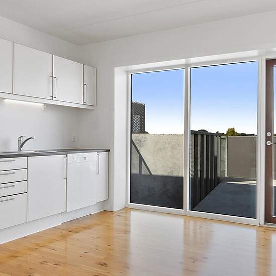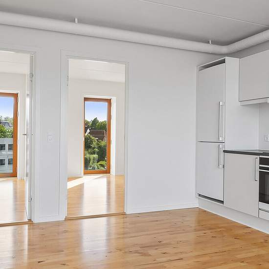 Lovely apartment in Nordic style with a beautiful view on the top floor. Underfloor heating throughout the apartment. On Skanderborgvej in Viby J a lovely apartment awaits you. With efficiently used floor space, two bedrooms, an open kitchen-living area and a large terrace with a fantastic view, this is a home that combines comfort with quality. The apartment is finished in a coherent Nordic style with plenty of natural light, high-quality appliances and practical details such as a dishwasher, washing machine, tumble dryer and good storage s...
