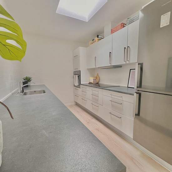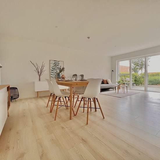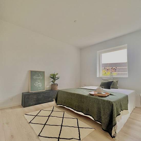 You can't get a better location in Stavtrup. The terraced house is located in a newer residential area with lots of families with children. You get a 3-room apartment with a nice white Svane kitchen with appliances and plenty of counter space, and there is the possibility to install your own dishwasher. The heart of the home is the large kitchen/dining area and living room with many good furnishing options, depending on the family's needs. There is access to a sunny terrace from the living room. The terraced house contains two large bedro...