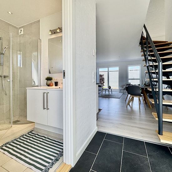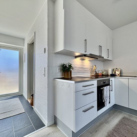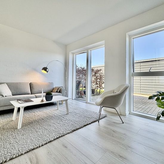 You cannot get a better location in Stavtrup. The townhouse is situated in a newer residential area with plenty of families with children. You get a 3-room apartment with a beautiful white Svane kitchen with appliances and plenty of counter space, and there is the possibility to install your own dishwasher. The heart of the home is the large kitchen/dining area and living room with many good furnishing options, depending on the family's needs. There is access to a sunny terrace from the living room. The townhouse contains 2 large bedrooms...