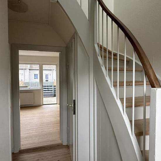 3-room terraced house – Skovbakken 9A – 7000 Fredericia Lovely 3-room terraced house of 100 m² spread over 3 levels for rent in Skovbakken – Fredericia. In a good neighborhood – located in the western part of Fredericia – a lovely 3-room terraced house of 100 m² is for rent, divided into 64 m² living area and 36 m² basement. The terraced house includes a small entrance hall with access to a toilet and stairs to both the basement and the first floor. Nice kitchen with all major appliances including a dishwasher. Lovely bright living room with...