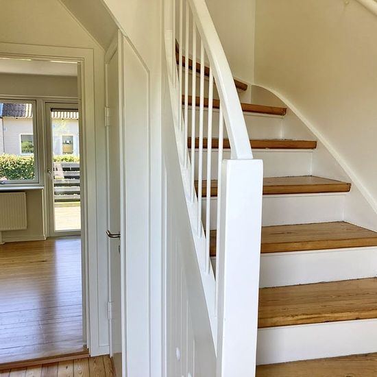 Welcome to this townhouse where light and quality meet a peaceful location in Fredericia. A move-in ready home with a pleasant atmosphere. The townhouse offers a functional layout with a small entrance hall that provides access to a modern toilet/bathroom as well as the stairs to both the basement and the first floor. The bright living room is inviting with direct access to a lovely terrace and a cozy garden, perfect for relaxation. The kitchen is nicely fitted and equipped with all necessary appliances, including a dishwasher. On the first...