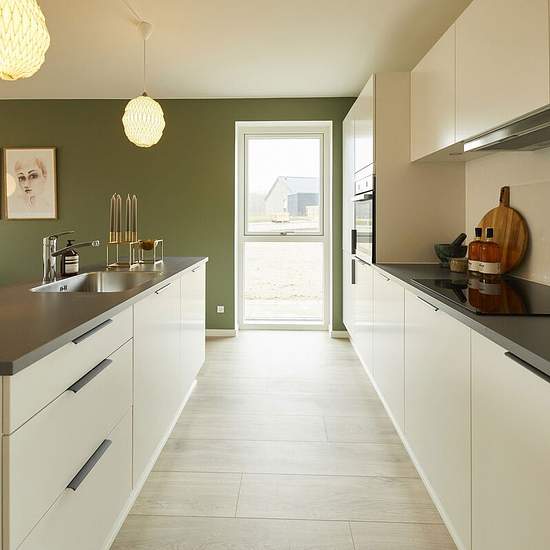 Velkommen indenfor På Sire Eskildsens Vej finder du dette moderne dobbelthus, hvor funktionalitet og atmosfære går hånd i hånd. Allerede fra den separate entré mærkes roen fra de lyse materialer og det fine lysindfald, der kendetegner hele hjemmet. Køkken, alrum og stue i ét flow Fra entréen træder du ind i boligens hjerte: det store køkken/alrum og stue. Det stilrene HTH-køkken står med hvide fronter, antracitgreb og en praktisk køkkenø, der binder rummet sammen og skaber et naturligt samlingspunkt. Den åbne forbindelse til stuen gør det...