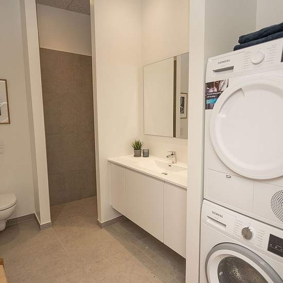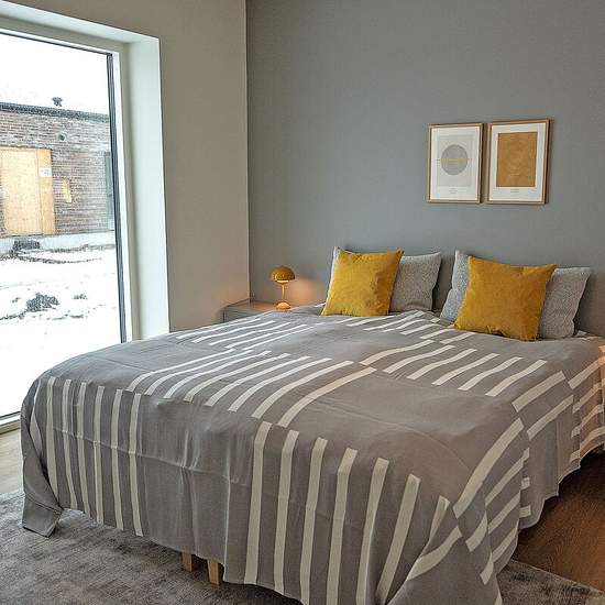 Here you get a home where modern comfort meets the calm pulse of the village just outside the door. Here you live in a single-storey terraced house, beautifully placed among small harmonious clusters of 3–6 homes, where well-maintained paved walkways, green edges and an inviting front garden welcome you every single day. Already at the entrance you notice the area's special atmosphere: a blend of newly built clean lines and the green local environment, which gives a calm and secure first impression. In front of the house you will find a coz...