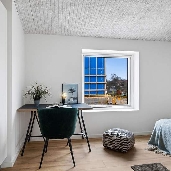Modern, bright and tasteful terraced house in Lejre Degnejorden – a modern village with community at its core. New construction is rising from the ground in Lejre. The landscape between the housing clusters at Degnejorden is designed as a natural area with varied plantings of different trees and shrubs on a base of meadow grasses and herbs. Informal footpaths and small recreational and activity areas will be established through the natural area. 82 rental units distributed across 3 different housing types in one or two storeys. In additio...