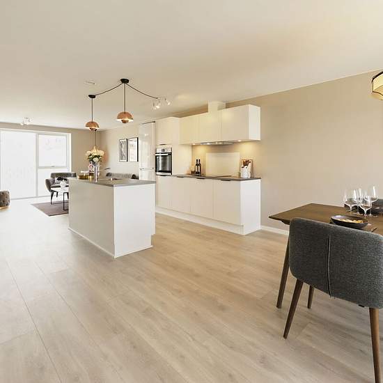 Når du træder ind i boligen, mødes du af en lys og venlig entré, der åbner sig mod det store køkken/alrum og stue. Her glider hverdagen let. Rummet er gennemlyst fra begge sider, og det skaber en stemning af rummelighed og nærvær – et naturligt samlingspunkt for både hverdag og weekend. Køkkenet som hjertet i boligen I midten ligger det moderne HTH-køkken, som binder opholdsrummene smukt sammen. Her er plads til at lave mad, snakke, arbejde, dække bord og være sammen – alt sammen i et rum, hvor livet kan få lov at udfolde sig. Plads til b...