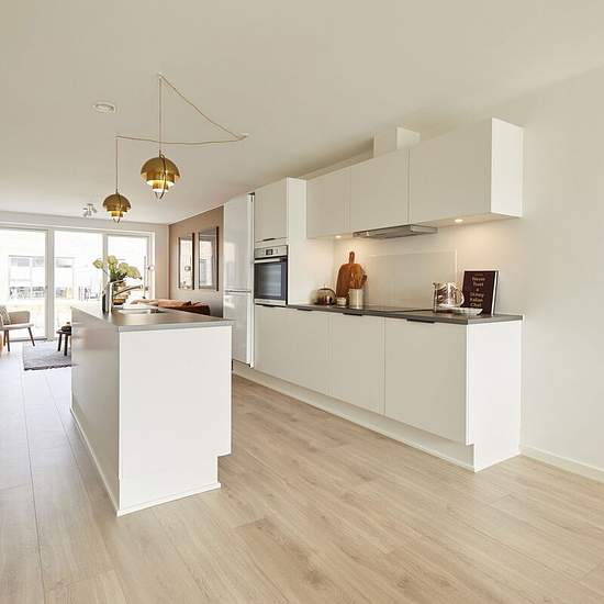 Rækkehus indrettet med særskilt entre med direkte adgang til stort køkkenalrum og stue i ét. Her er store glaspartier i begge ender af rummet, hvilket giver en gennemstrømning af naturligt lys. I midten af rummet er placeret det moderne og lyse køkken, hvor der på begge sider heraf er god plads til spisebord samt hyggelig stue. Fra køkkenalrum er videre adgang til stort soveværelse med skabsvæg, værelse, særskilt bryggers samt badeværelse. Have: Egen have og terrasse Udhuse: Redskabsrum 7m² Parkering: Fælles parkering Al forbrug afregnes di...