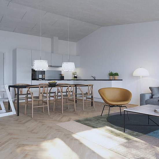Lys og moderne bolig i to plan Langkær 175 byder på en gennemtænkt planløsning i to etager, hvor lys, rummelighed og funktionalitet går hånd i hånd. Her får du et hjem, der skaber de perfekte rammer for både hverdagsliv og hyggelige stunder – med et åbent opholdsrum i stueplan og private værelser samlet ovenpå. Stueplan – hjemmets samlingspunkt Boligens hjerte er det store køkken/alrum og stue, hvor der er god plads til både madlavning, samvær og afslapning. Store vinduespartier åbner op mod terrassen og haven, så udelivet altid er tæt på...