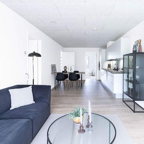 Welcome to Birksvej – here you get an inviting terraced house where quality, light materials and well-considered solutions together create a home that is ready to move into. You’ll enjoy a modern everyday life in peaceful surroundings with a playground, pathways and a strong local community right outside the door. Kitchen-dining area and living space The natural focal point of the home is the open kitchen-dining area, where cooking, coziness and everyday life come together. The kitchen is fitted with timeless materials and all necessary ap...