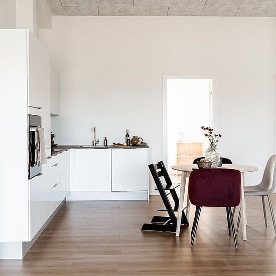 At Tusindfryd, you will find this well-designed 3-room townhouse, offering plenty of space for both family life and everyday comfort. The home is modern, bright, and built with sustainable materials – a residence that is both functional, inviting, and spacious. Kitchen-Dining Area and Living Room The home's natural gathering point is the lovely kitchen-dining area, where the kitchen is constructed with sleek materials and equipped with all major appliances – including a dishwasher. There is ample space for a dining table and a cozy seating...