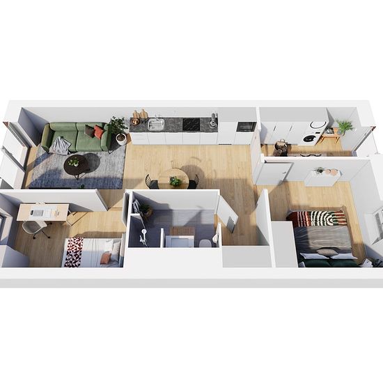 Here on Birksvej, you will find an inviting terraced house where modern solutions, calm colors, and pleasant daylight come together in perfect harmony. Here you get an easy and convenient home designed for everyday life—in an area where community, security, and green surroundings are a natural part of the whole. A kitchen-living room with space for all the essentials The central room of the home is the open kitchen-living area, which combines cooking, cozy evenings, and the family's daily life. The kitchen is made of light materials with q...