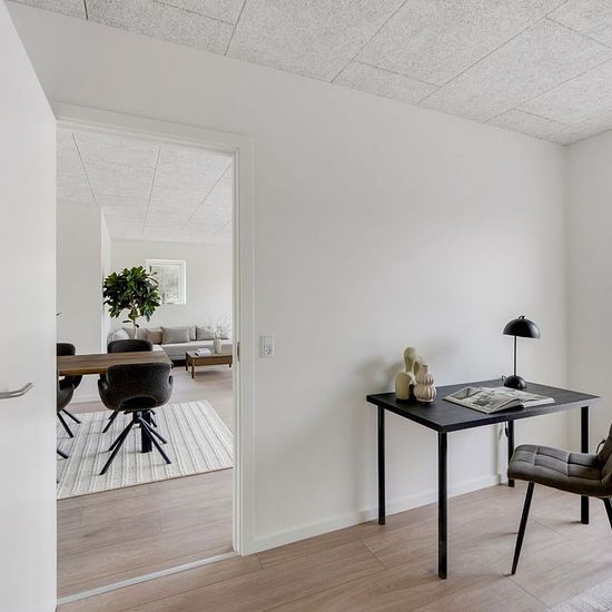 Rækkehusene er indrettet med 3-4 rummelige værelser, hvor der er plads til både gæster og overnattende børn eller børnebørn. Alle boliger får et dejligt køkken-alrum i åben forbindelse med stuen, samt to eller tre tilstødende værelser. Boligerne får alle egen terrasse. Hårde hvidevarer Der er gulvvarme i alle boligens rum. I køkkenet findes alt i hårde hvidevarer, og på badeværelset både vaskemaskine og tørretumbler. Husdyr Lejere kan ansøge om tilladelse til at holde én indekat eller hund på adressen. Udekatte er ikke tilladt. Du skal al...