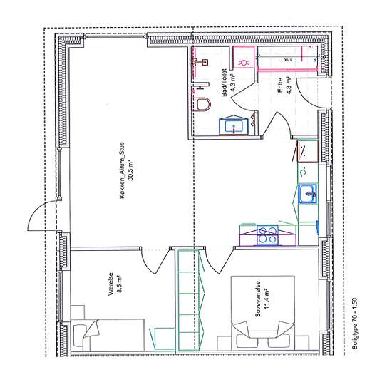 Velkommen til Gymnasiebakken – et nyt boligområde i Tørring. Gymnasiebakken tilbyder en række forskellige boliger fra 70 til 96 m². Der er 3 værelses på 70 og 82 m² og 4 værelses på 96 m². De er klar til indflytning fra den 1. august 2026. INDE: Rækkehuset her består af et lyst køkken/alrum og stue i ét med udgang til egen terrasse. Derudover er boligen udstyret med entre, et dejligt badeværelse, samt to soveværelser. Boligerne varmes op med fjernvarme. PARKERING: Hvert rækkehus har to p-pladser foran boligen og et skur på 7 m². Der er kla...