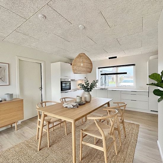 Welcome to Hyldebærhaven! The townhouse offers 91 m² of well-utilized living space divided into 3 rooms and is designed with a focus on a practical and modern everyday life. The heart of the home is a bright living environment where the kitchen and living room are combined in an open and inviting solution. Here, the large windows create a natural influx of light, giving the room a light and friendly atmosphere. The two rooms provide flexibility in furnishing and can be used as a bedroom, children's room, guest room, or office – depending ...