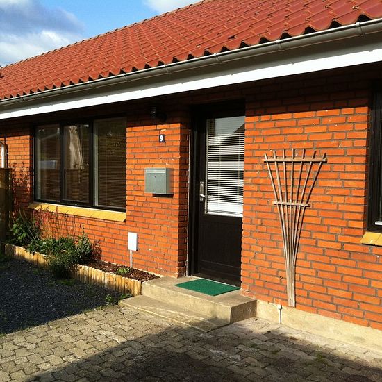 3-room terraced house in Pårup between Silkeborg and Ikast. The terraced house includes an entrance hall, Nice living room, Kitchen with dining area, Bedroom with new wardrobe and access to backyard with terrace, 1 small room. Bathroom with shower cubicle. Front yard with terrace. Red brick house with tiled roof, Tiled terrace and windbreak.