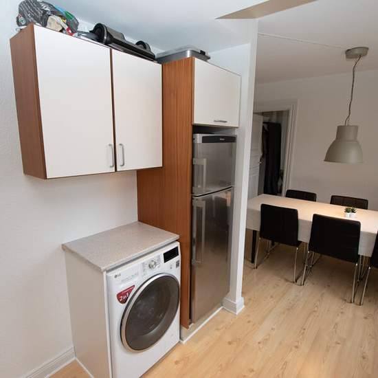 Eksklusiv 3,5 værelses lejlighed i vestbyen! Indretning: Rummelig og lys entré med god plads til overtøj. Lyst køkkenalrum med flotte og moderne køkkenelementer med greb i stål, stålsokkel og alt i hårde hvidevarer ligeledes i rustfrit stål. Opvaskemaskine, køle-/fryseskab, glaskeramisk komfur med varmluftsovn, Kombi Vaskemaskine/ tørretumbler, udtræksemhætte og spots i loft og under skabene. Fra køkkenalrum er der adgang til en hyggelig og let indrettelige stue med flotte stuklofter. 2 store soveværelser med god plads til dobbeltseng, skab...