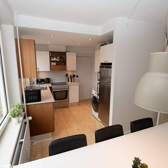 Welcome to this apartment where light meets liveliness in the heart of Aalborg's west side. A move-in ready home with a pleasant atmosphere. The apartment offers a spacious, bright entryway that creates an inviting mood from the first step. The open kitchen-dining area is fitted with modern stainless-steel kitchen units, including everything from a dishwasher to a glass-ceramic stovetop, making cooking a pleasure. The living room, with its beautiful stucco ceilings, invites cozy moments and lends itself to simple decoration. There is space ...